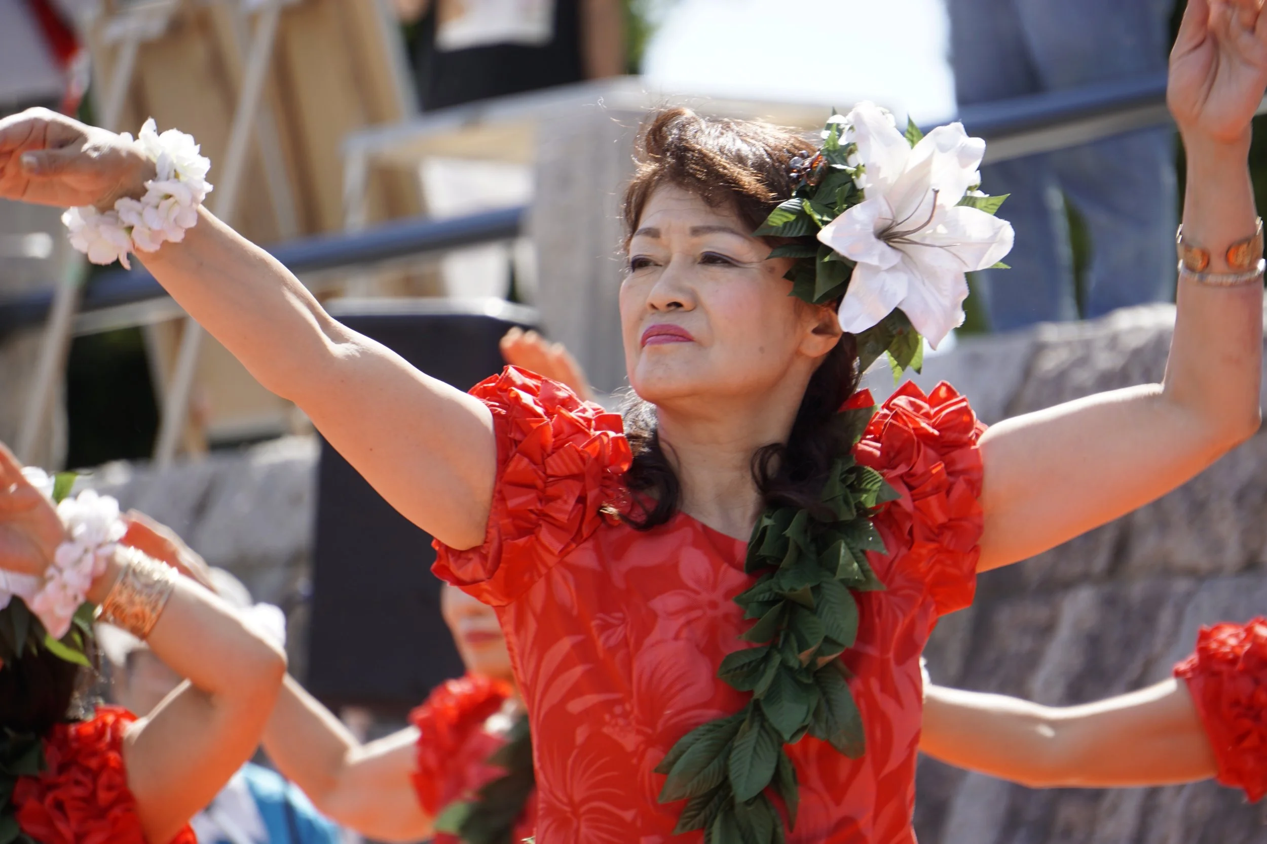 After that we wandered up to an incongruous-seeming hula performance across the river from the Genbaku Dome. Lilting, familiar, joyful ukulele songs, and considerably more modestly dressed dancers than in Hawaii, happily doing their thing on the bank of the river, with tourists strolling and eating ice cream, enjoying the lovely sunny day. This is a place of life and music, right here at the epicenter of that horror.